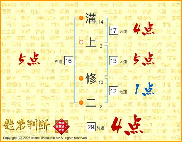 溝上修二さんの天運は17画の4点!