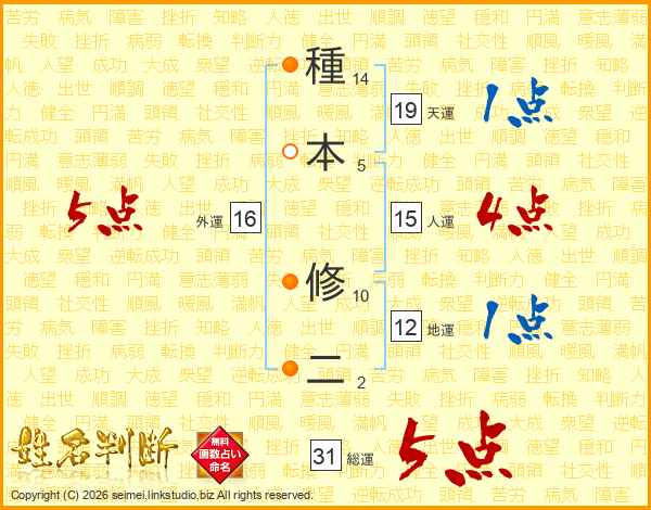 種本修二さんの総運は31画の5点!