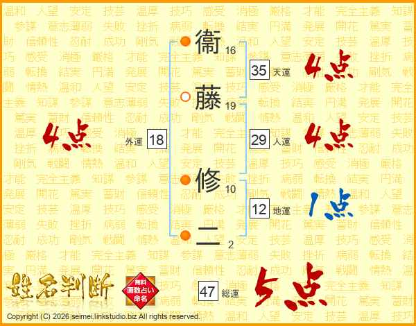 衞藤修二さんの総運は47画の5点!