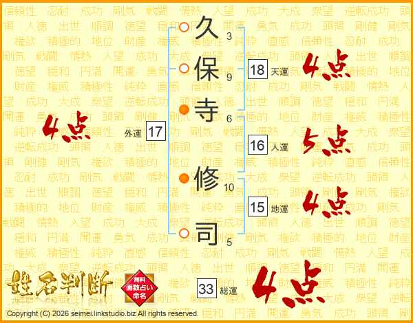 久保寺修司さんの総運は33画の4点!