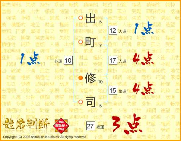 出町修司さんの総運は27画の3点!