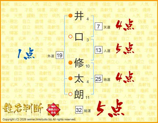 井口修太朗さんの地運は25画の4点!