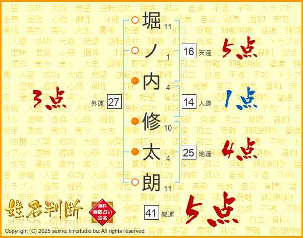 堀ノ内修太朗さんの総運は41画の5点!