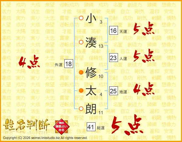 小湊修太朗さんの人運は23画の5点!