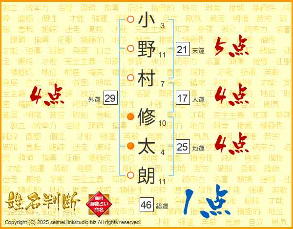 小野村修太朗さんの地運は25画の4点!