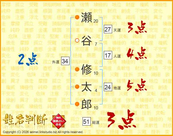 瀬谷修太郎さんの天運は27画の3点!