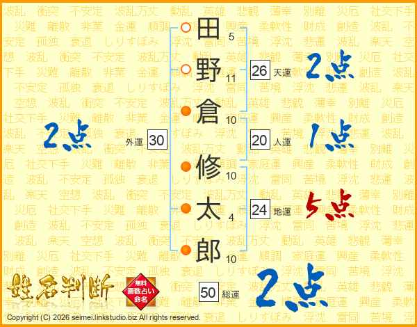 田野倉修太郎さんの天運は26画の2点!