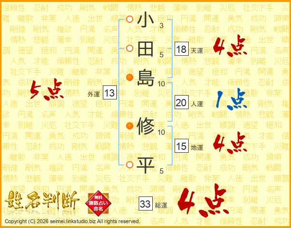 小(3画)田(5画)島(10画) 修(10画)平(5画)