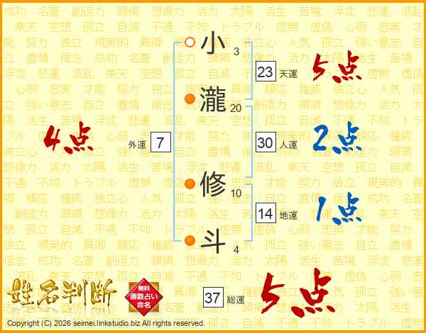 小(3画)瀧(20画) 修(10画)斗(4画)