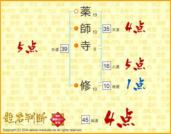薬師寺修さんの総運は45画の4点!
