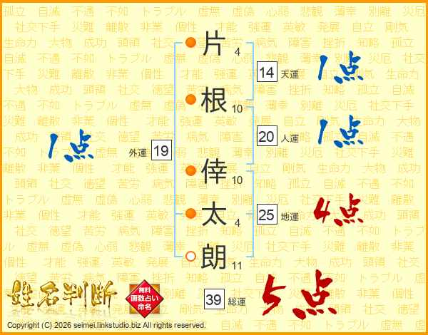 片根倖太朗さんの総運は39画の5点!