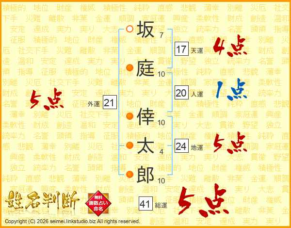 坂庭倖太郎さんの総運は41画の5点!