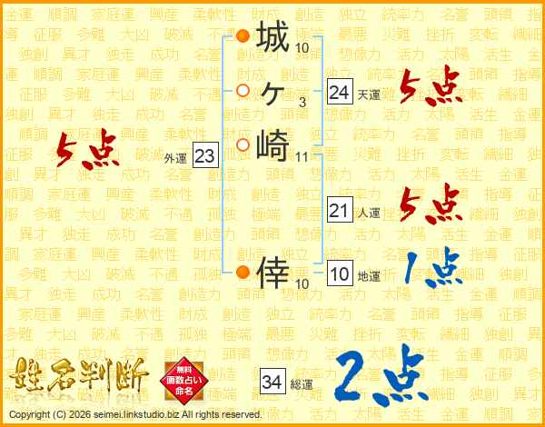 城(10画)ヶ(3画)崎(11画) 倖(10画)