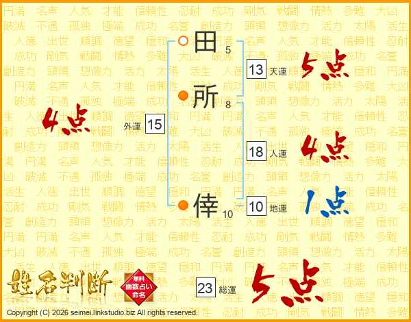田(5画)所(8画) 倖(10画)