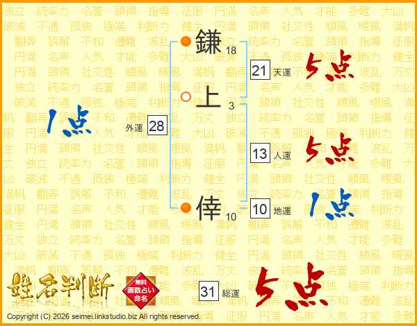 鎌上倖さんの総運は31画の5点!