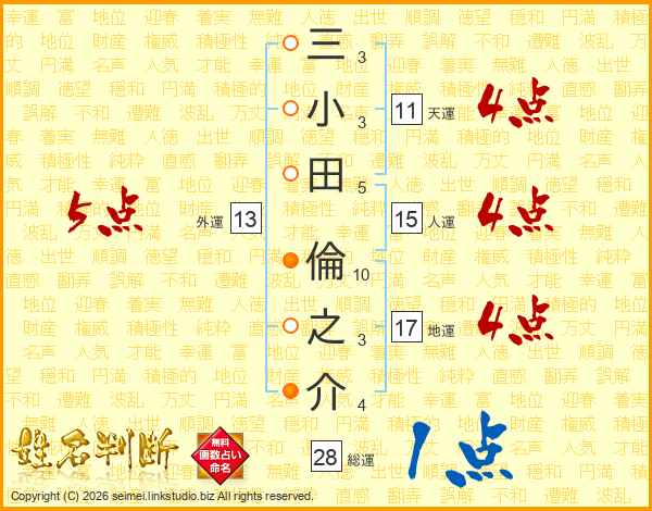三小田倫之介さんの総運は28画の1点!
