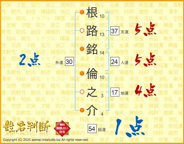 根路銘倫之介さんの天運は37画の5点!