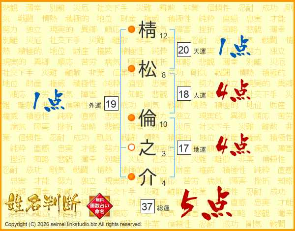 棈松倫之介さんの総運は37画の5点!