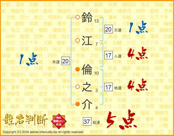鈴江倫之介さんの総運は37画の5点!