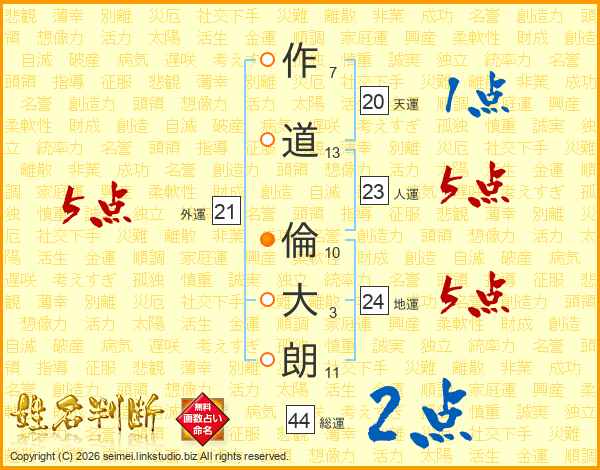 作道倫大朗さんの総運は44画の2点!