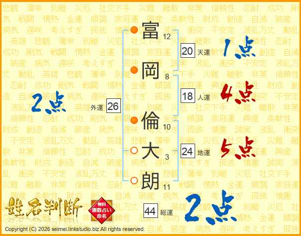 富岡倫大朗さんの総運は44画の2点!