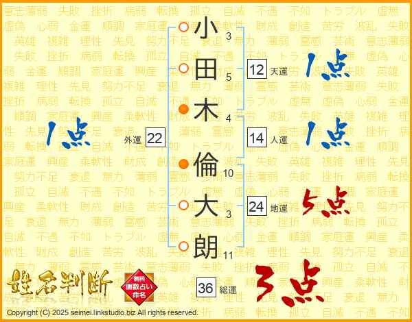 小田木倫大朗さんの総運は36画の3点!
