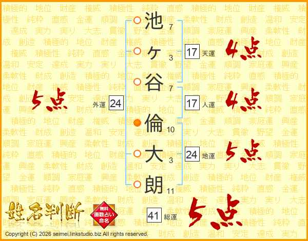 池ヶ谷倫大朗さんの人運は17画の4点!