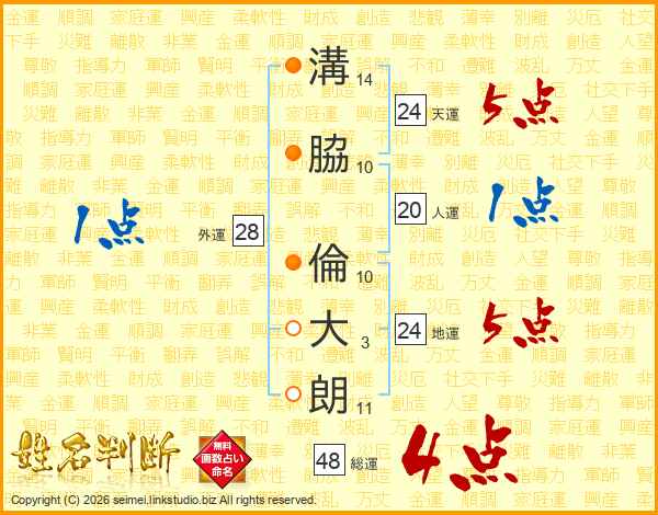 溝脇倫大朗さんの天運は24画の5点!