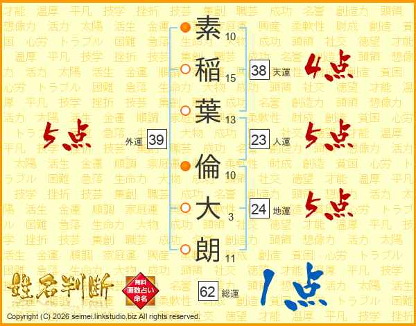 素稲葉倫大朗さんの天運は38画の4点!