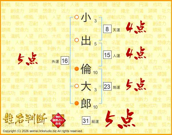 小出倫大郎さんの総運は31画の5点!