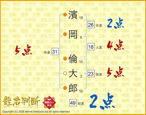 濱(18画)岡(8画) 倫(10画)大(3画)郎(10画)