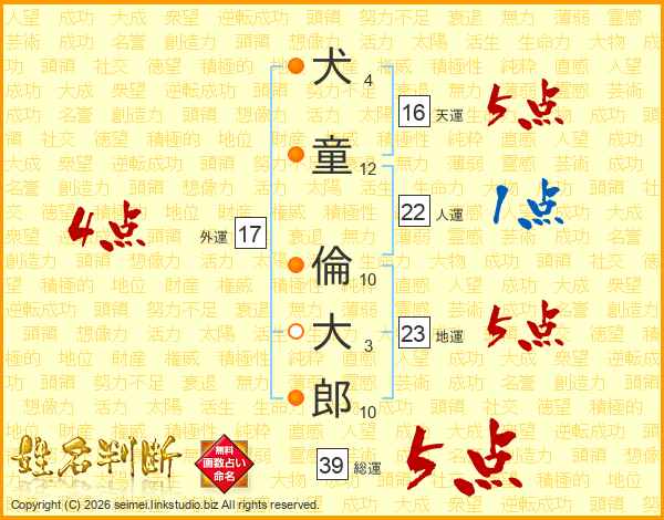 犬童倫大郎さんの総運は39画の5点!