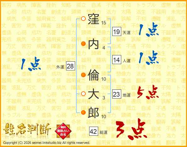 窪内倫大郎さんの人運は14画の1点!