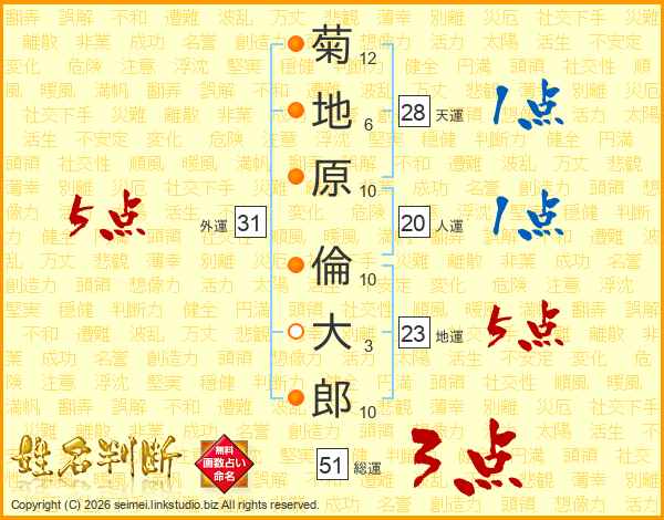 菊地原倫大郎さんの地運は23画の5点!