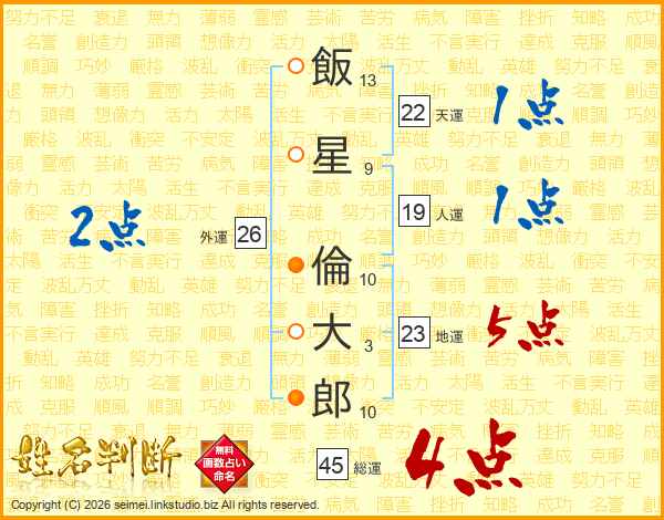 飯星倫大郎さんの総運は45画の4点!