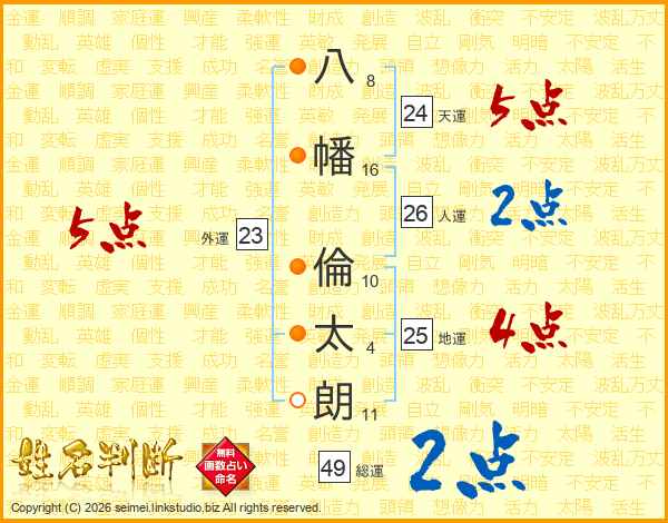 八幡倫太朗さんの総運は49画の2点!