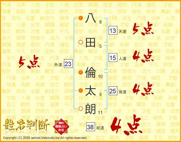 八田倫太朗さんの総運は38画の4点!