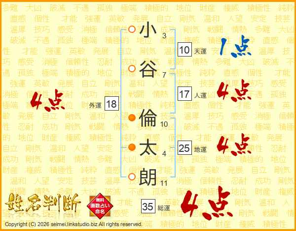 小谷倫太朗さんの総運は35画の4点!