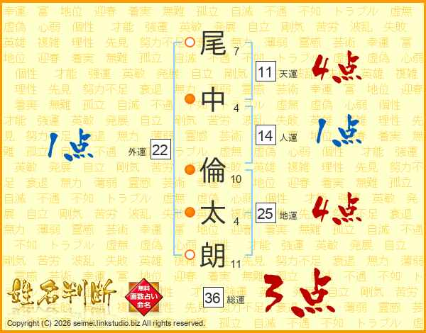 尾中倫太朗さんの天運は11画の4点!