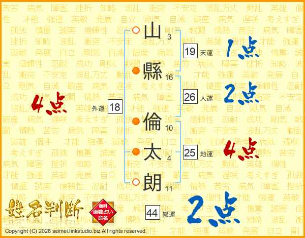 山縣倫太朗さんの総運は44画の2点!