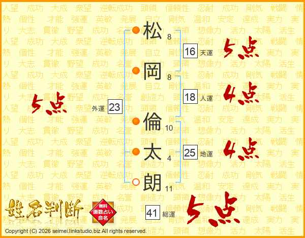 松岡倫太朗さんの総運は41画の5点!