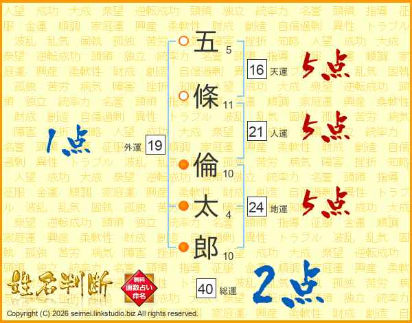 五條倫太郎さんの総運は40画の2点!