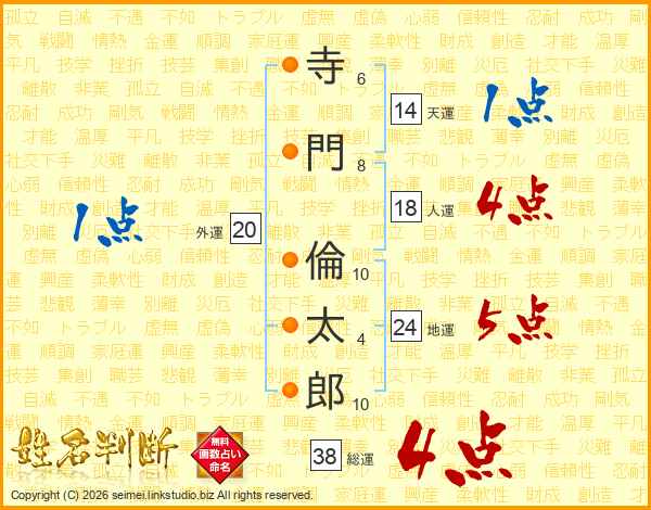 寺門倫太郎さんの総運は38画の4点!