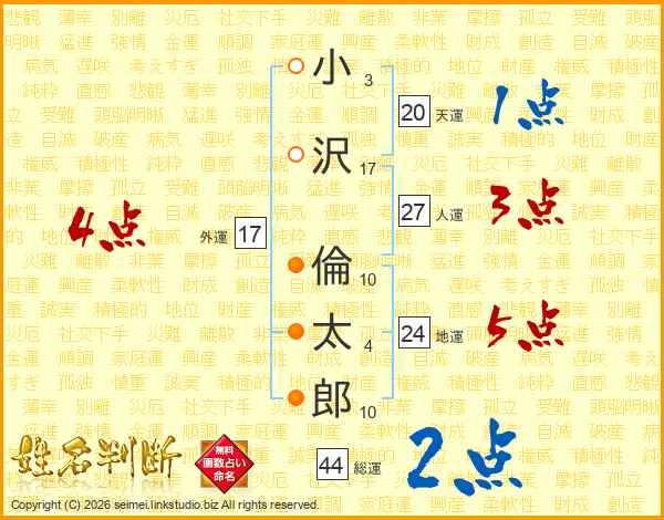 小沢倫太郎さんの外運は17画の4点!