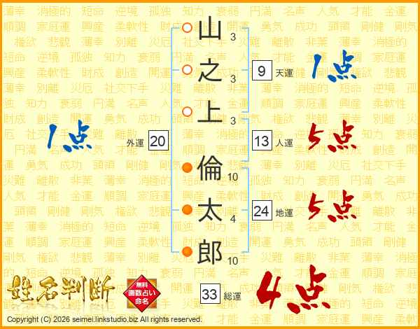 山之上倫太郎さんの総運は33画の4点!
