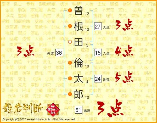 曽根田倫太郎さんの外運は36画の3点!
