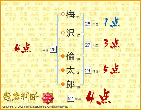 梅沢倫太郎さんの総運は52画の4点!