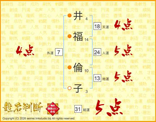 井(4画)福(14画) 倫(10画)子(3画)