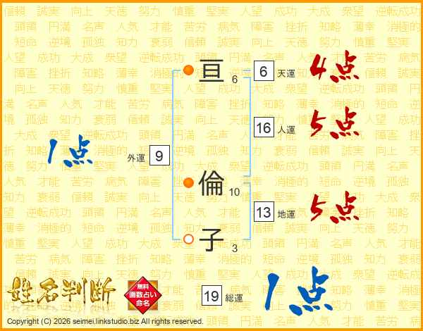 亘(6画) 倫(10画)子(3画)