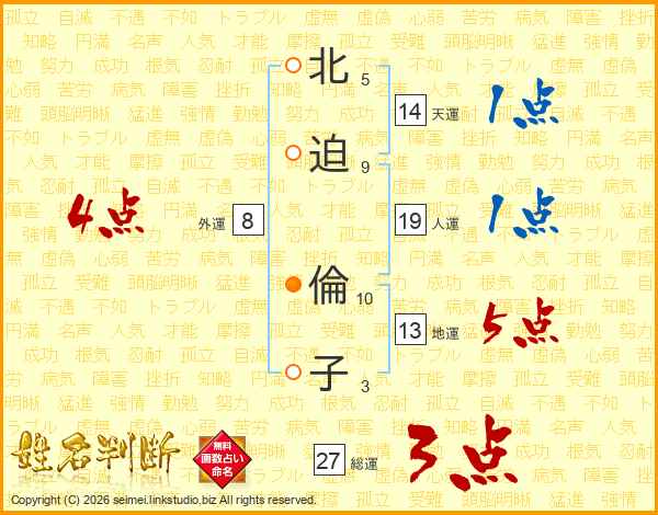 北迫倫子さんの天運は14画の1点!